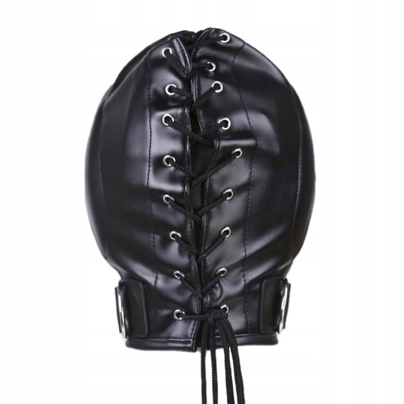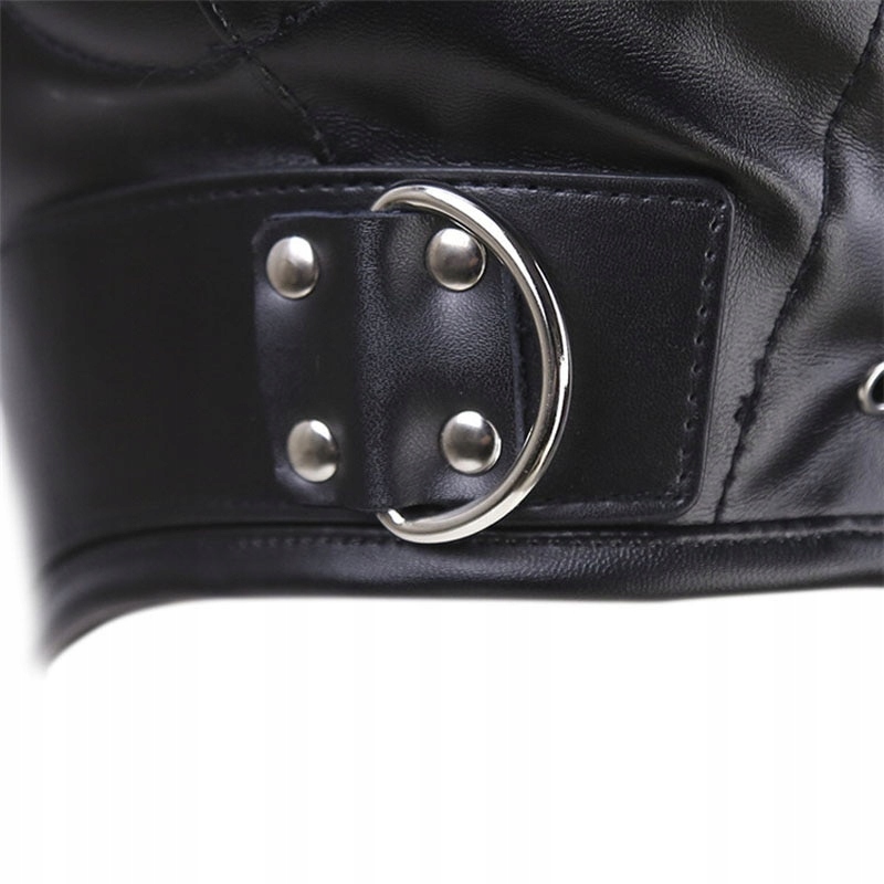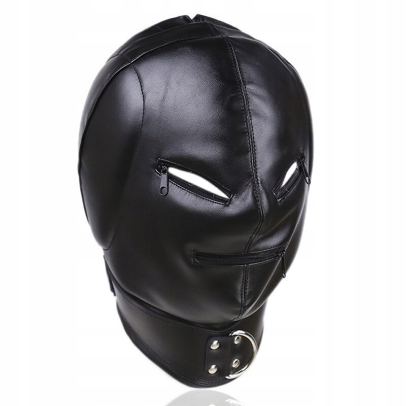 шкіряна бдсм маска з застібкою на очі та ручкою