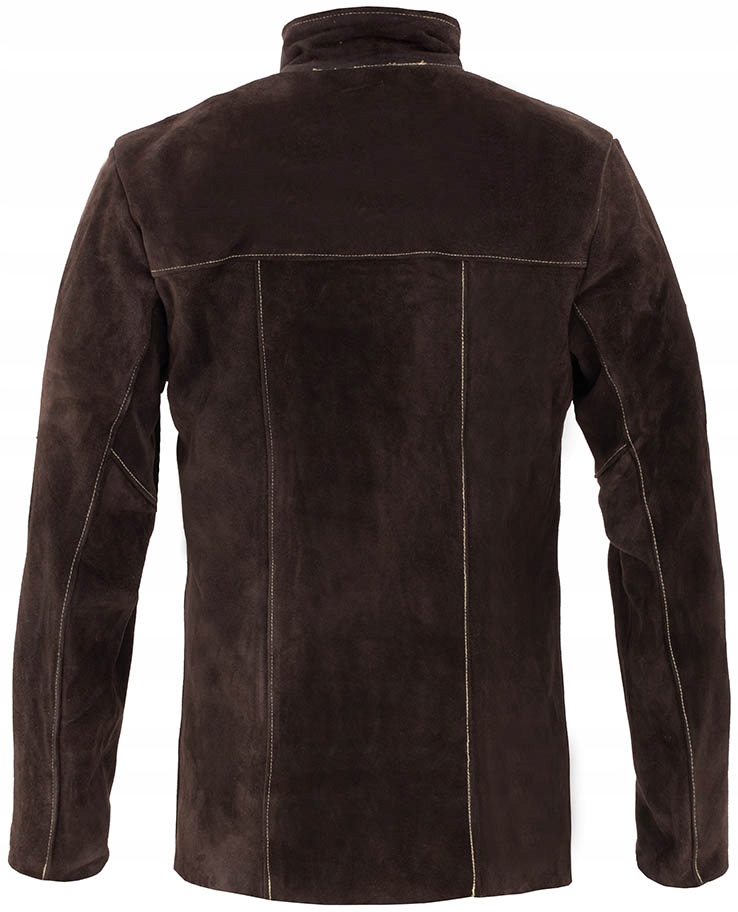 Зварювальна сорочка виготовлена з міцної коров’ячої спилок і прошита вогнестійкою ниткою. Засувки ізольовані і не проводять електрику, тому захищають зварника від ураження електричним струмом. Додатково куртка застібається на липучки, що забезпечує кращу герметичність. На комфорт використання впливають практичні рішення: 2 внутрішні кишені для дрібних аксесуарів, кишені на рукавах і відкладний комір з жорсткою підкладкою, яка захищає шию, наприклад, у вітряну погоду, і додатково захищає від високих температур.