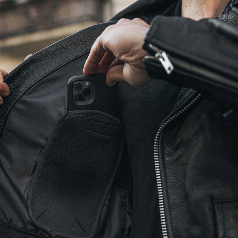 Мотоциклетна шкіряна куртка з протекторами ліктів і плечей CE рівня 1 гарантує повний захист. Ззаду є додаткова кишеня, яка дозволяє додати протектор. Регулювання по талії дозволяє точно підлаштуватися під будь-яку фігуру. Має зовнішні та одну внутрішню кишені.