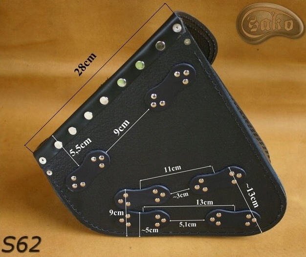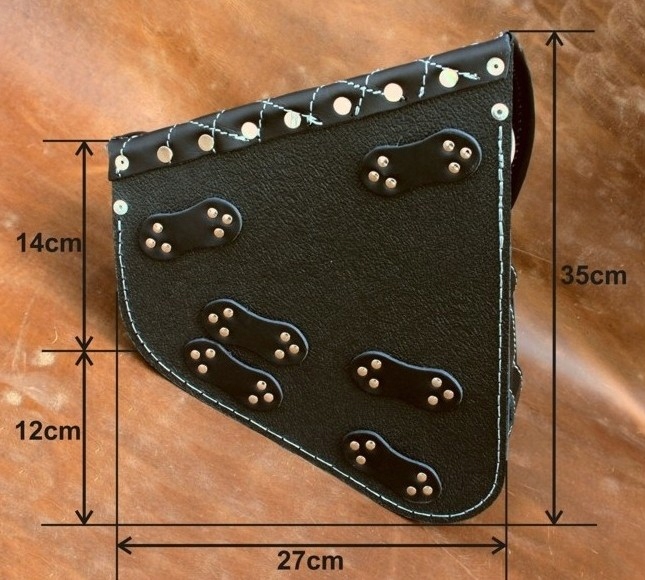 Сумка для ЛІВОГО борту мотоцикла, виготовлена з обтягнутої телячої шкіри товщиною 2,0мм, додатково посилена пластиком товщиною 2,0мм, завдяки чому зберігає свою початкову форму в процесі експлуатації.