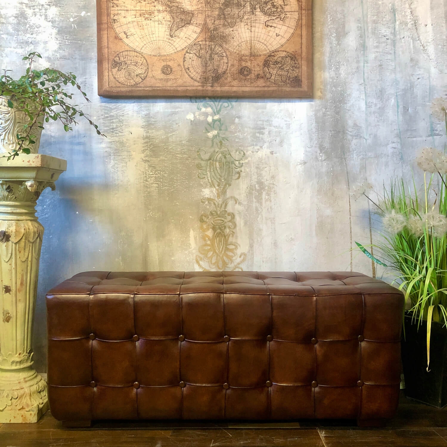 Це предмет меблів без спинки, без зайвих аксесуарів і прикрас, який ідеально підійде як місце для короткого відпочинку або взування. Ефектне стьобання додає ще більше шарму та елегантності. Під сидінням є два містких ящика, де можна зберігати необхідні речі, наприклад, взуття або газети. Лавка має простий, але унікальний дизайн, який додасть вашому інтер'єру колоніальний стиль. Його ширина становить 120 см, що забезпечує достатньо місця для сидіння. Виберіть цю незвичайну шкіряну лавку та насолоджуйтеся комфортом і вишуканим стилем.