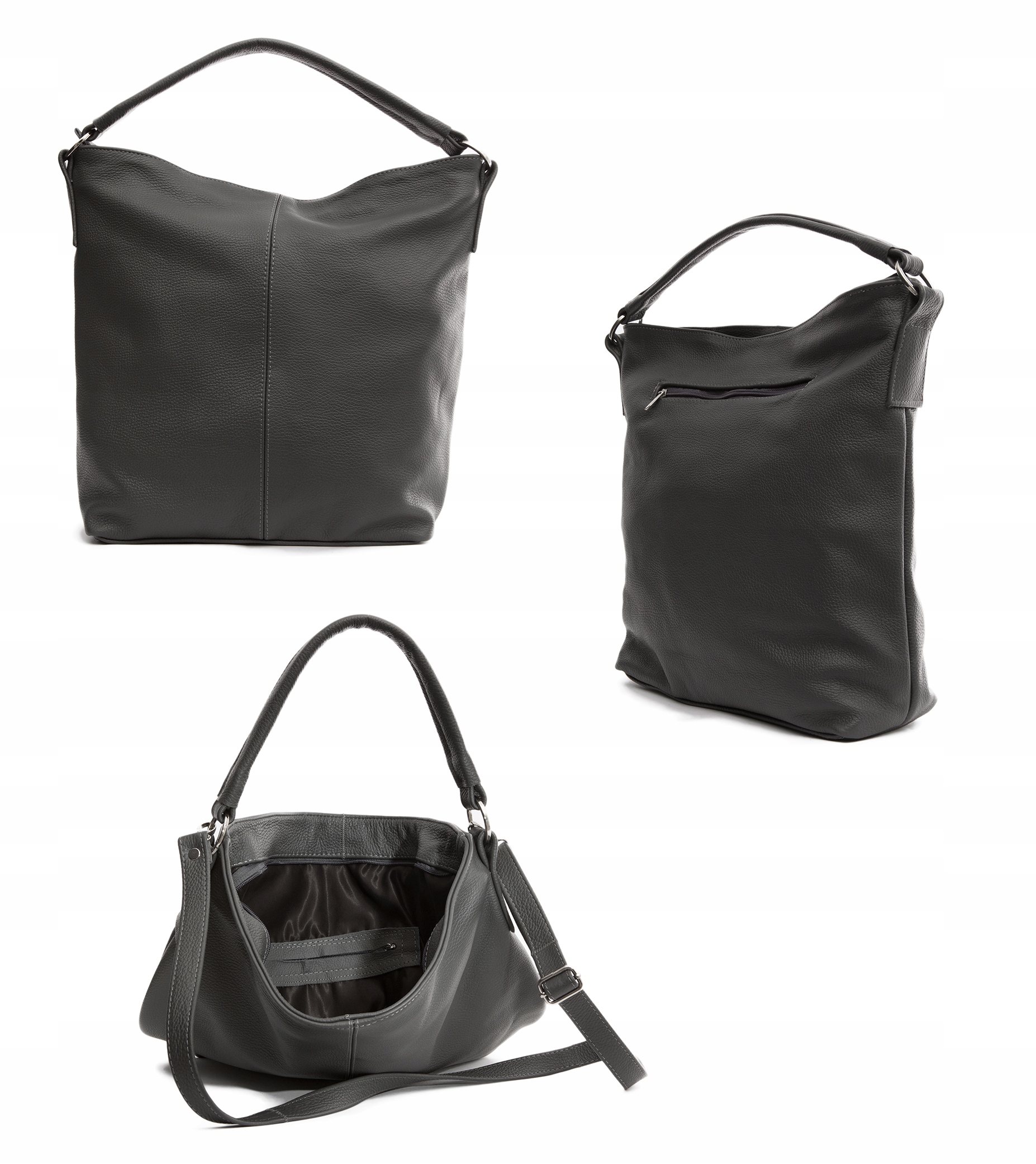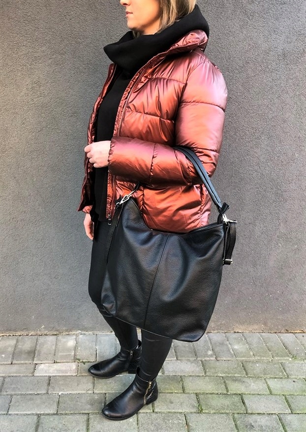 - Шкіряна, м’яка сумка формату А4, повністю виготовлена з м’якої натуральної шкіри.