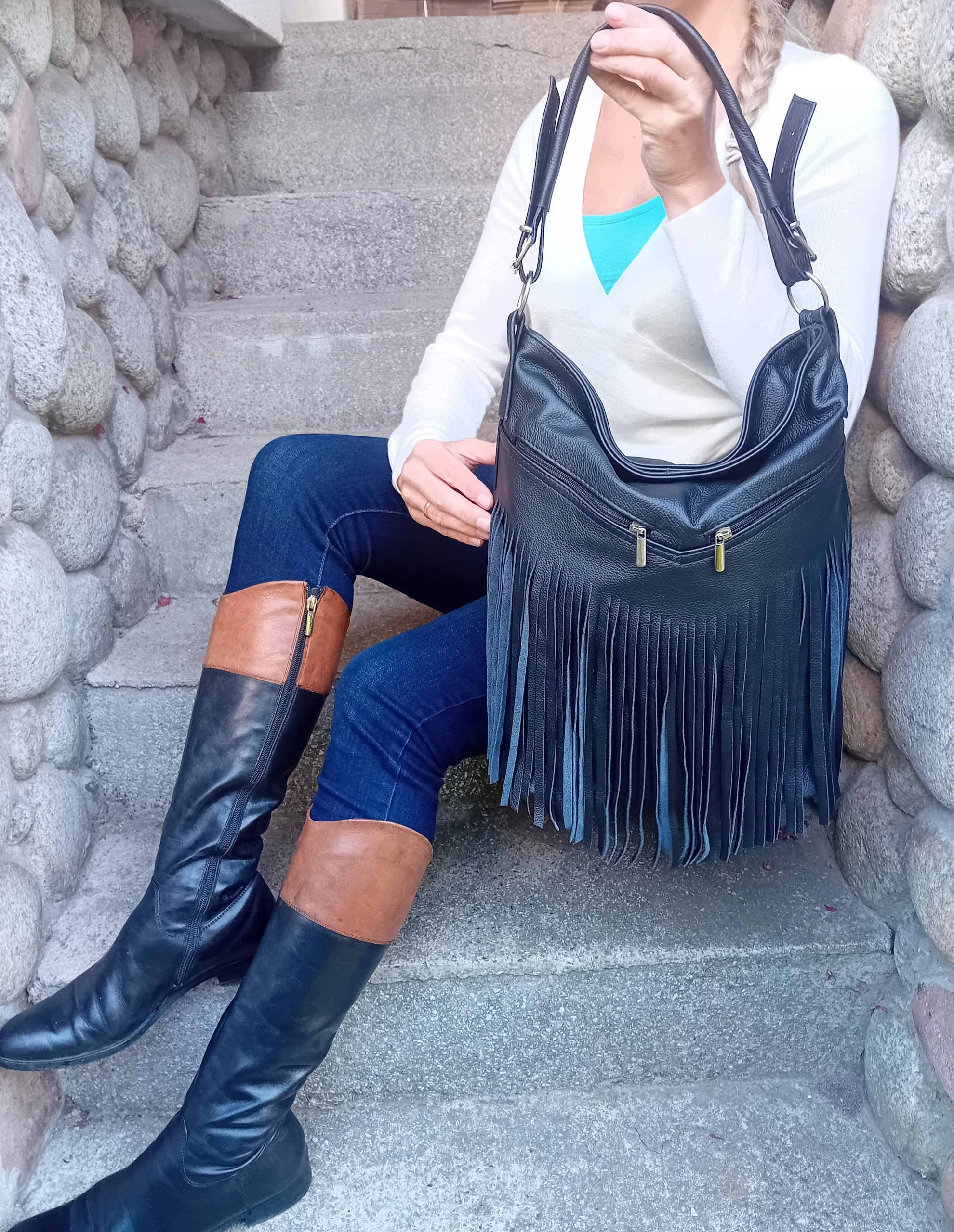Шкіряна сумка Сумка з натуральної шкіри з бахромою Boho Premium Collection