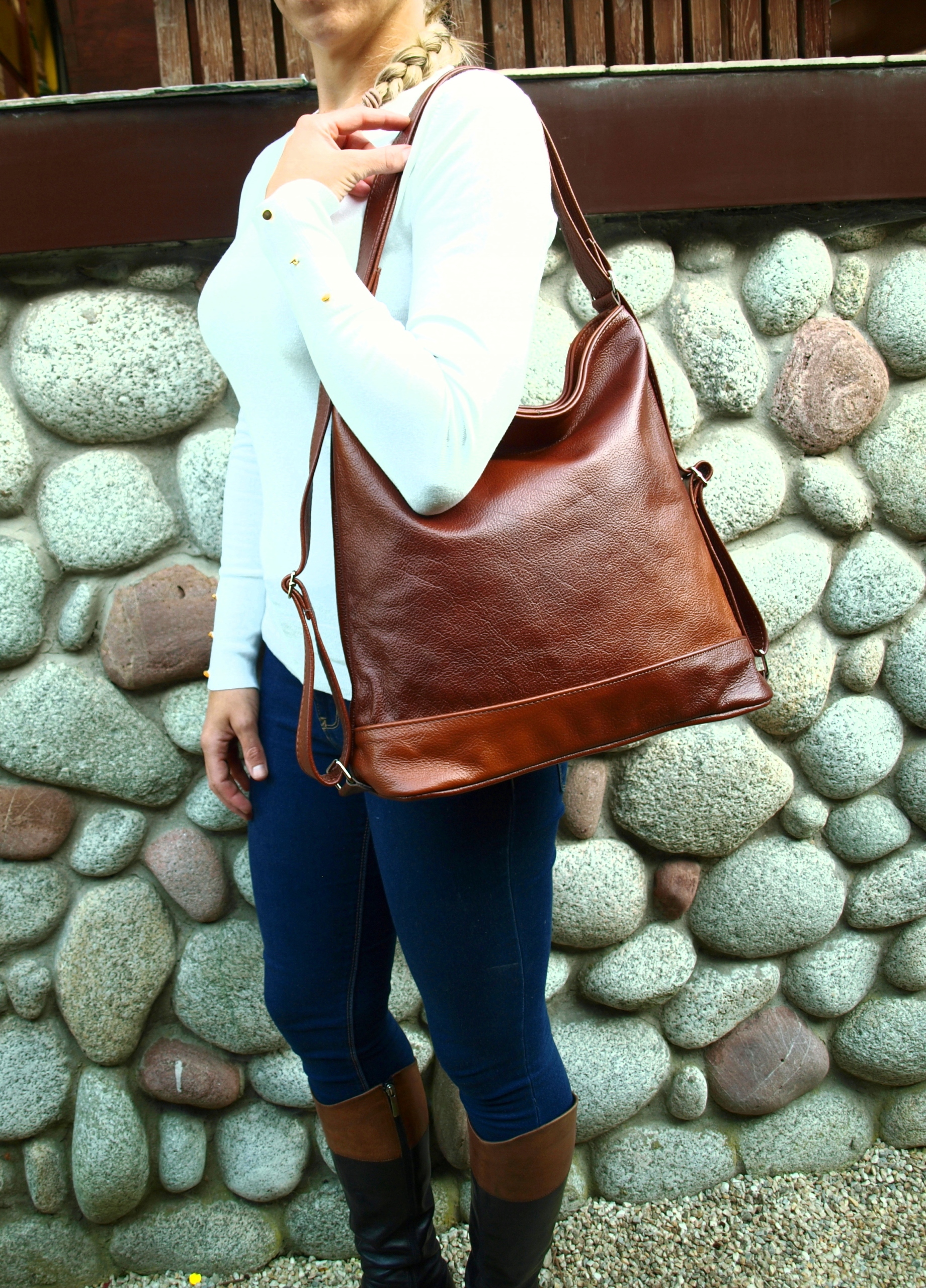 Шкіряна сумочка Рюкзак натуральна шкіра 2в1 коричневого кольору