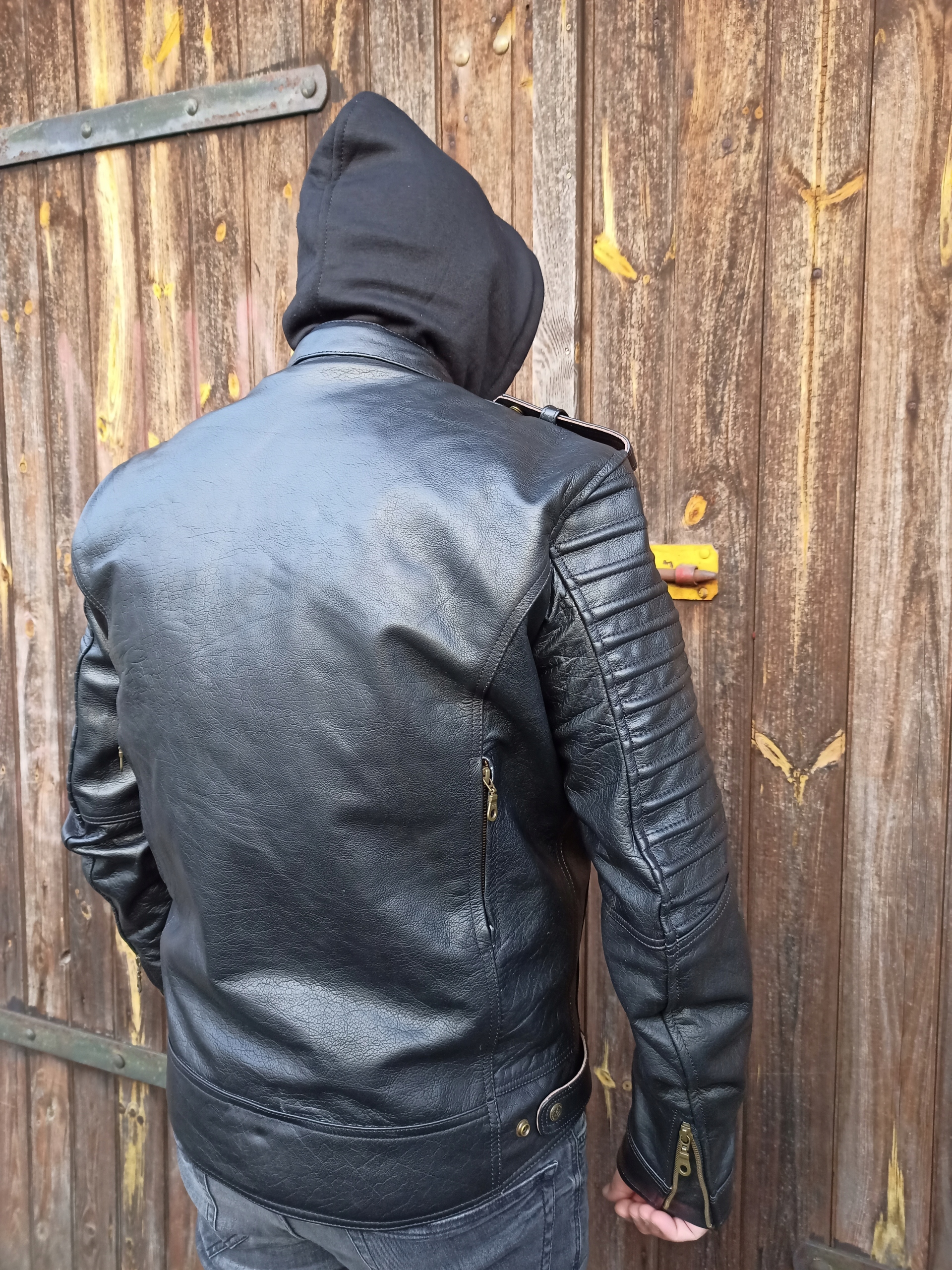 елегантний мотоцикл Універсальна шкіряна куртка, вентиляція, знімний капюшон, знімний вкладиш, кишені для захисників!