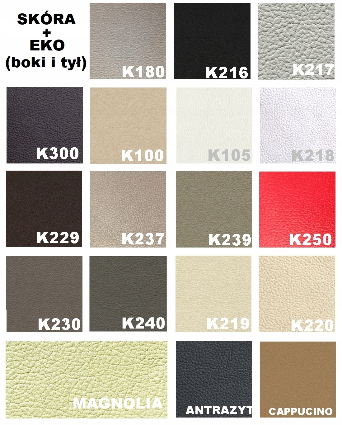 - можливі інші типи шкіри: Dollaro, Toledo, California, Modena, Massiv (опція) ) li>