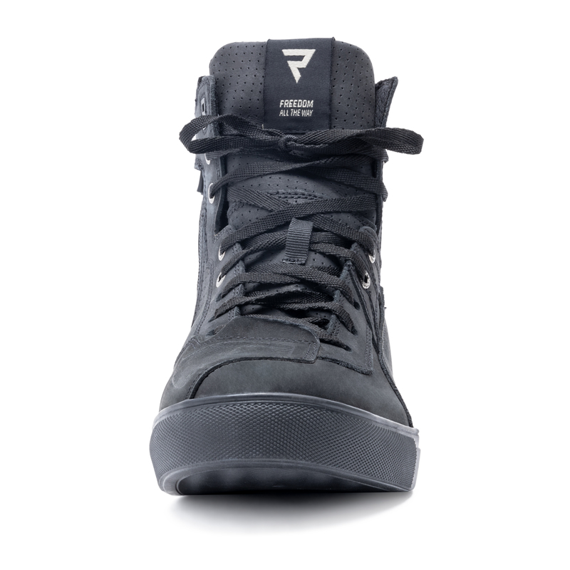 взуття для мотоциклів Rebelhorn Vandal оснащені перфорованими шкіряними шкіряними панелями та 3D сітчастою підкладкою, що забезпечує міцну вентиляцію. Підсилена підошва та жорсткі підбори та кубики охоплюють захист. Rebelhorn Vandal виготовлений з коров’ячої шкіри з м'яким покриттям для високого почуття комфорту.
