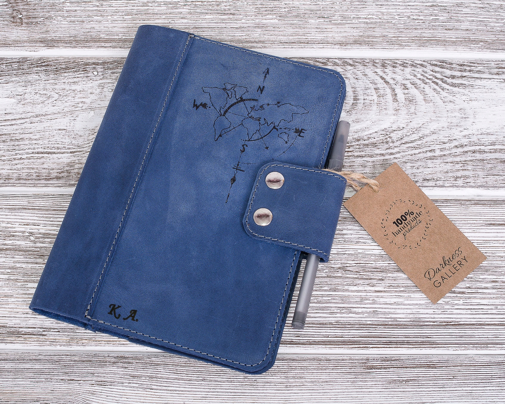 Шкіряні блокноти ручної роботи формату А5 з гравіюванням, сині