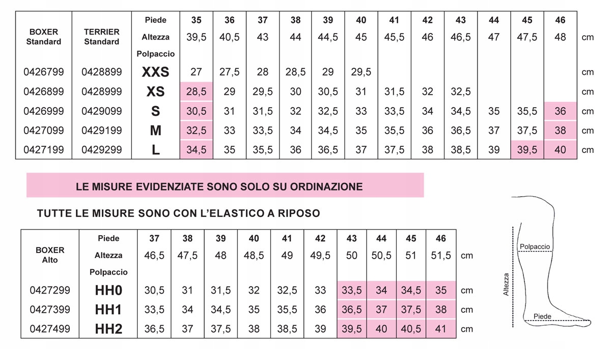 Ми рекомендуємо вимірювати розмір литок за допомогою штанів і шкарпеток і враховувати приблизно 1 см менше, ніж фактичне вимірювання, оскільки еластична стрічка розтягується на 2 см / 3 см.