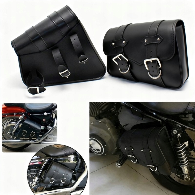 Мотосідельні сумки, універсальні бічні сумки ретельно виготовлені з екошкіра для багажу, покупок або інших речей. Чудовий жорсткий матеріал, з'єднаний заклепками, закривається на ремінь і пряжки.