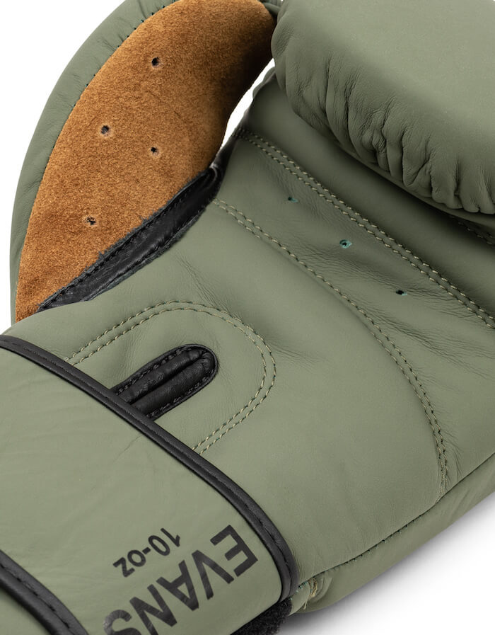 Модель Еванса ідеально анатомічно профільована, замшева шкіра на внутрішній частині великого пальця полегшує прилипання до кулака, а додатково надає рукавиці рукавички "старовинного" рукавички. Багатоквартирна структура піни дозволяє ідеальне, анатомічне розташування руки в кулак. Рукавички завдяки їх сплющеному і трохи розширеному профілю та згорнутим, прихованим "великим пальцем" забезпечують кращий захист пальця від розриву.