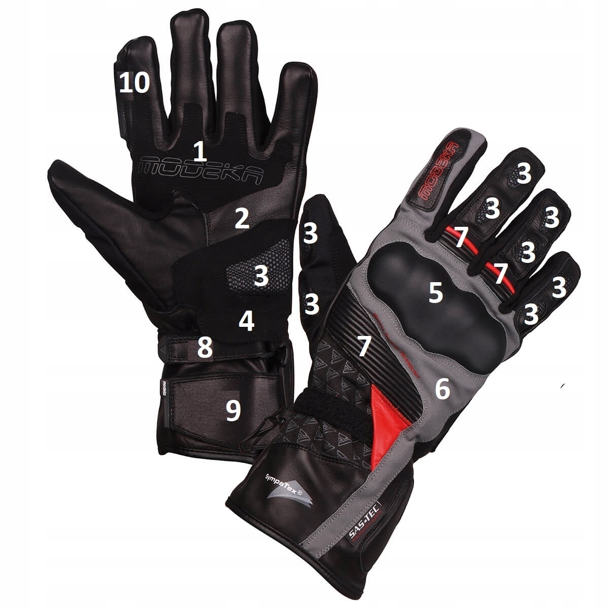 Рукавички PANAMERICANA - чудовий вибір для кожного ентузіаста Мототуризму. Вони є першим вибором для людей, які дбають про найвищу якість виготовлення. Оснащені термопластичним протектором для щиколотки від відомої компанії SAS-TEC . На пальцях є посилення Shoeller Keprotec. Всередині є водонепроникна мембрана SYMPATEX, яка захищає від вітру та дощу та допомагає відводити піт з внутрішньої сторони рукавички назовні. Кожна частина рукавичок виготовлена з різних матеріалів рукавичка має різні функції, які детально описані нижче. Продукт відповідає стандарту EN 13594:2015.