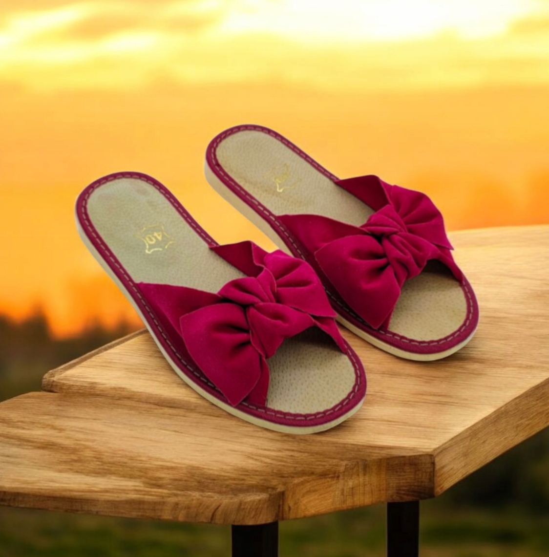 ⭐ Жіночі шкіряні тапочки - з елегантним бантом ⭐