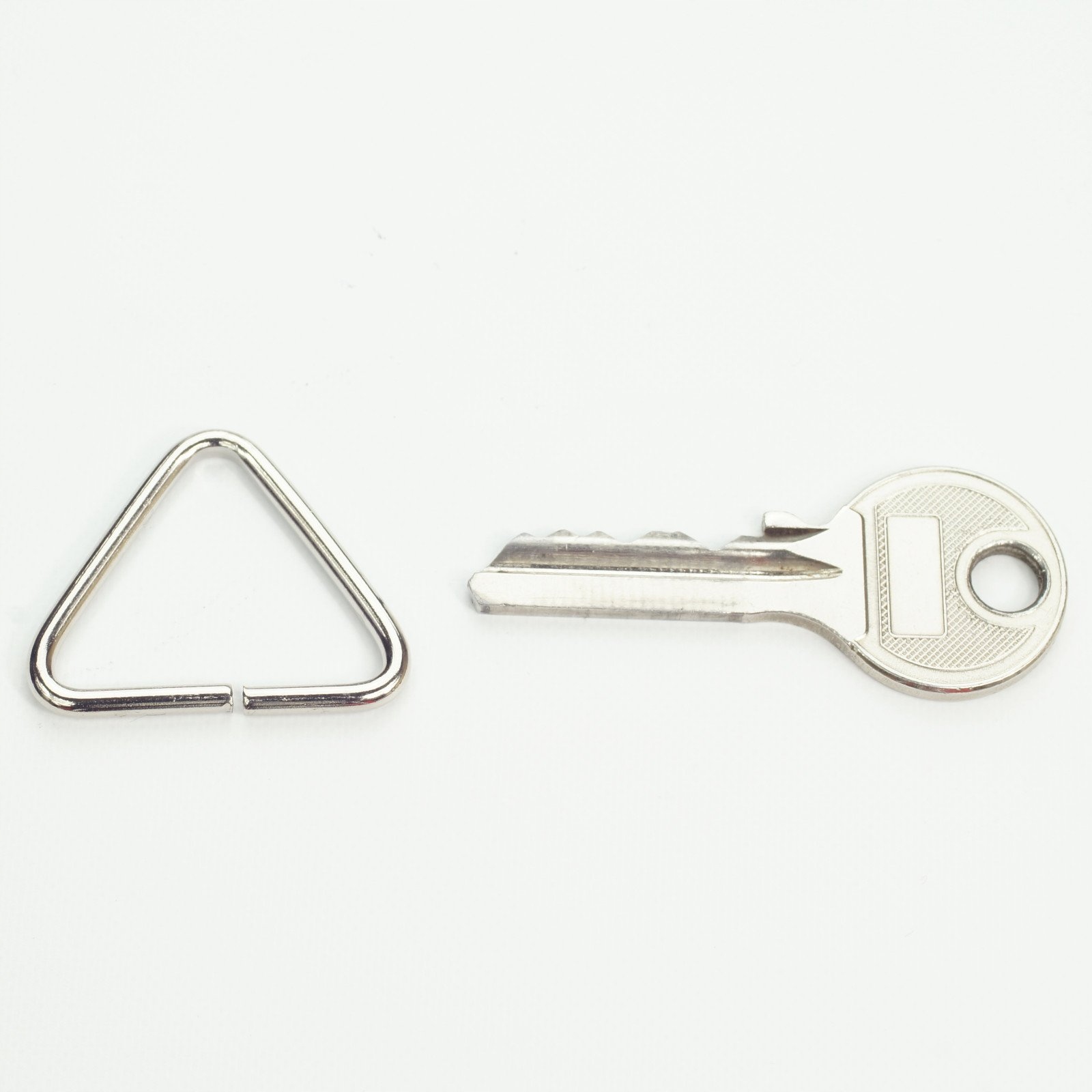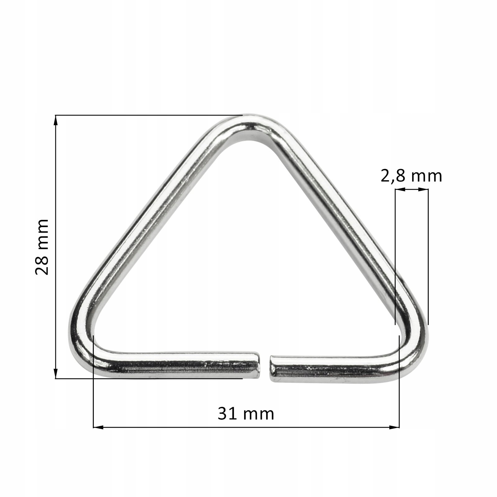 Трикутники шкіряного виробництва з внутрішнім розміром 31 мм, виготовлені зі сталевого дроту діаметром 2,8 мм. Трикутники покриті срібним (нікелевим) гальванічним покриттям.