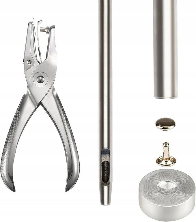 - Практичний набір інструментів для складання та плоскогубці для вирізання отворів у папері: перфоратором можна зробити отвір у шкірі предмет, шкіряні ремені, одяг, потім відбийте заклепки, гарна заміна для додавання прикрас до ваших рукоділля