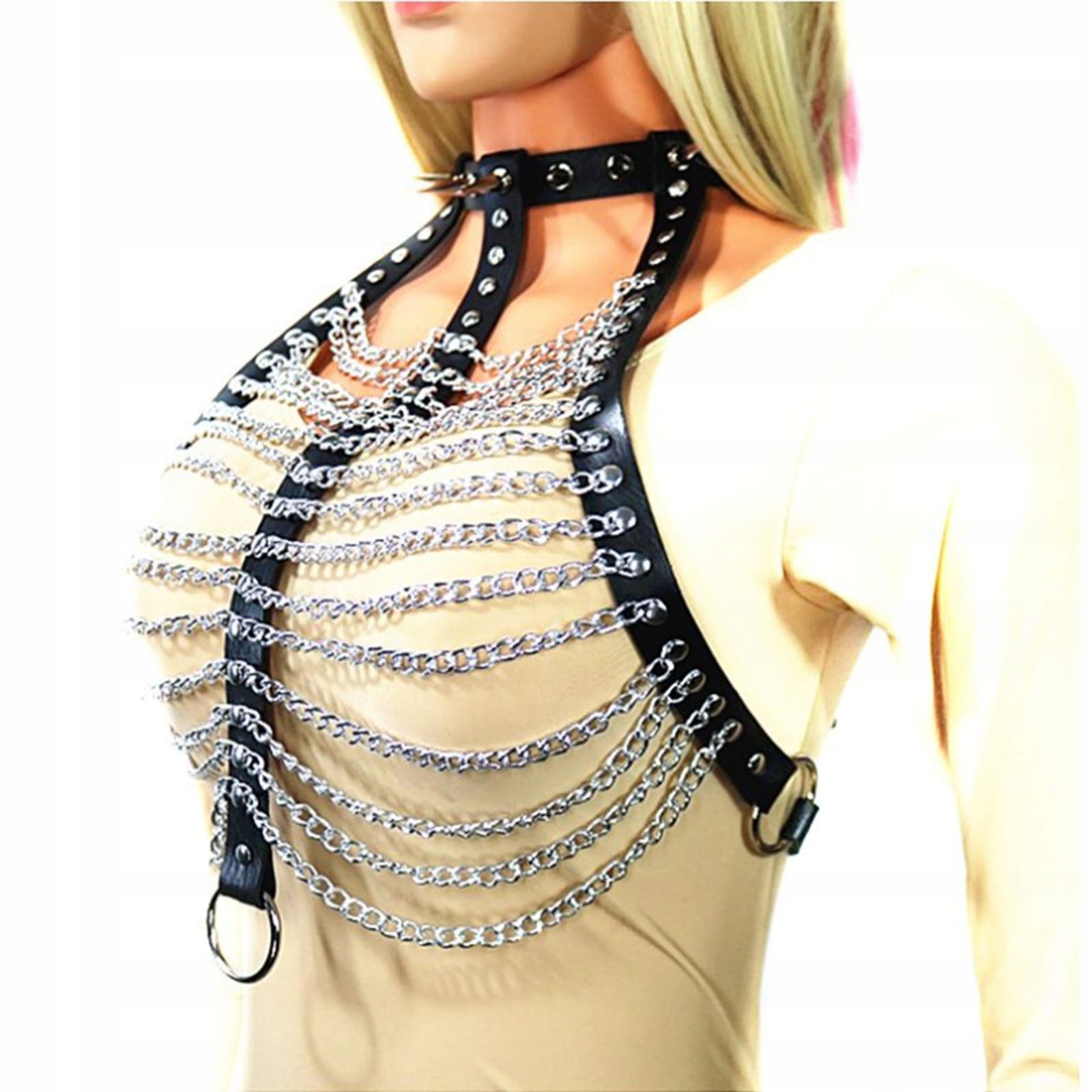 шкіряний бюстгальтер боді жіночий бдсм ланцюжки