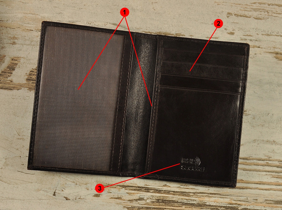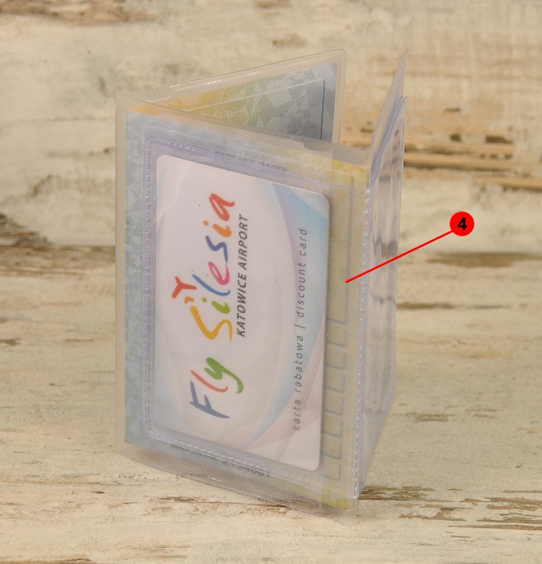 4 - знімний футляр для свідоцтва про реєстрацію автомобіля та два місця для банківської картки або документів цього формату, ID-картки, водійських прав тощо.