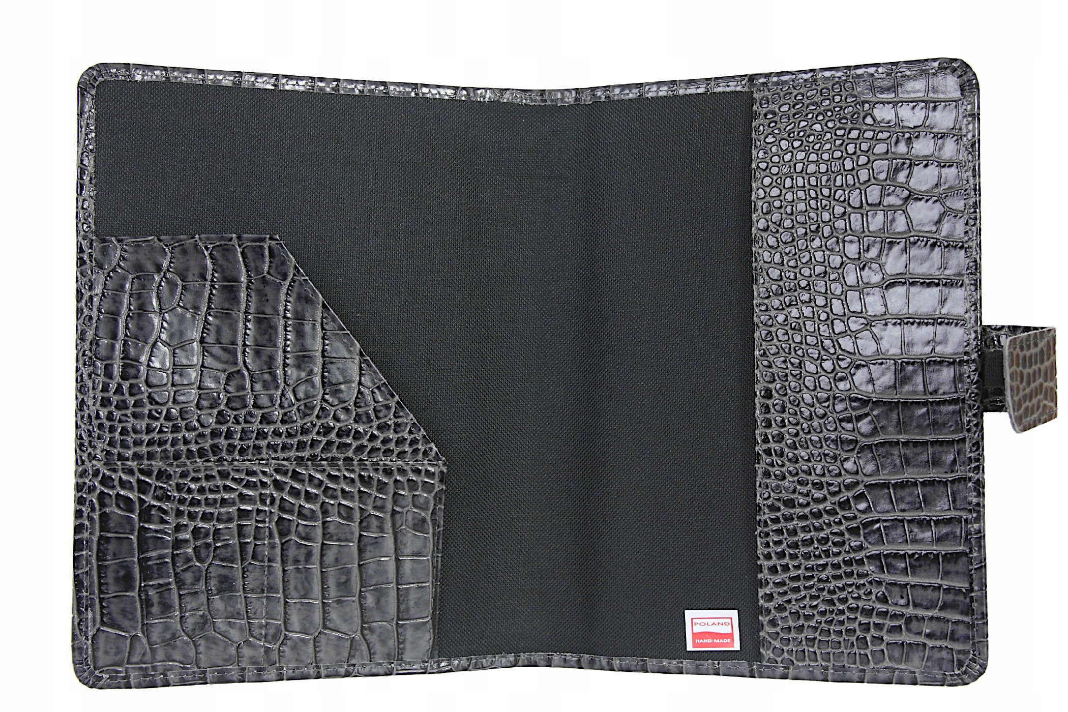Обкладинка, футляр для календаря, блокнота або книги. Формат А5. Польський виріб з натуральної графітової шкіри з тваринним мотивом. Всередині є кишені для візиток і карток. Застібка на клапан із застібкою. Тримач для ручок під клапаном.