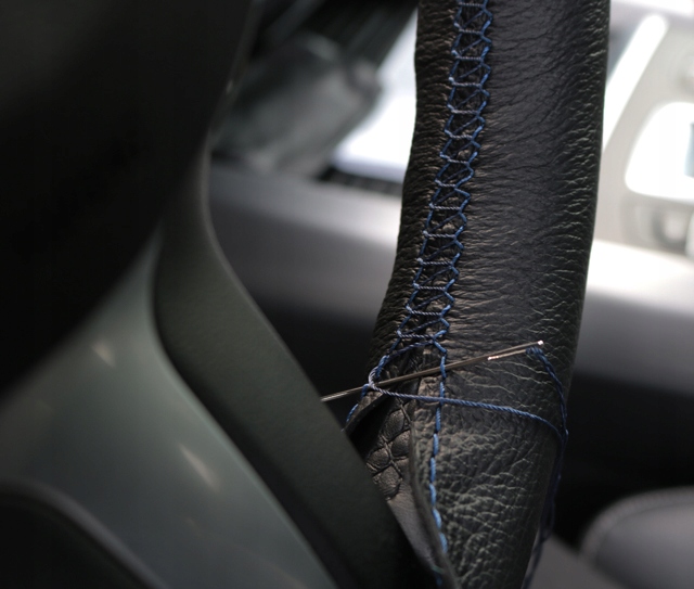 Одягніть чохол на кермо так, щоб шкіряний з’єднання було вгорі керма та посередині керма.