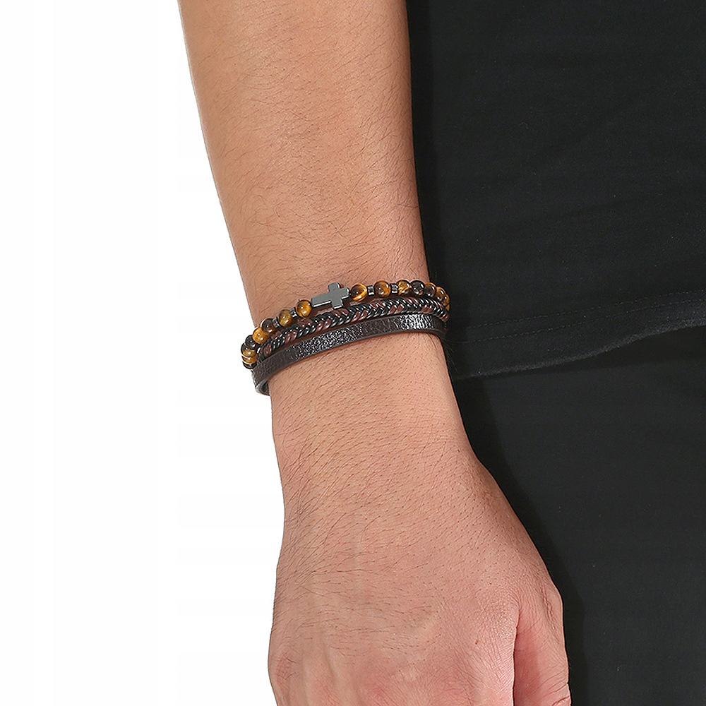 ШКІРЯНИЙ ЧОЛОВІЧИЙ БРАСЛЕТ ХРЕСТИКИ СТАЛЬ 316Л