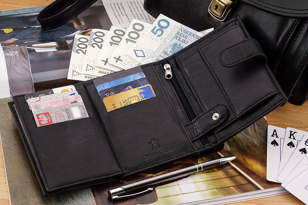 Ця модель є інновацією чоловічого стилю. Гаманець виготовлений з натуральної шкіри. Чорний поєднується з будь-яким одягом, а сучасний крій робить гаманець придатним для чоловіків, які цінують деталі. Зручна застібка на передній частині гаманця гарантує, що його вміст надійно захищений.