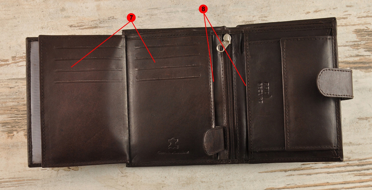 Гаманець вміщує великі банкноти та свідоцтво про реєстрацію автомобіля в обкладинці. Все це гарантує тривале використання гаманця і задоволення від покупки.