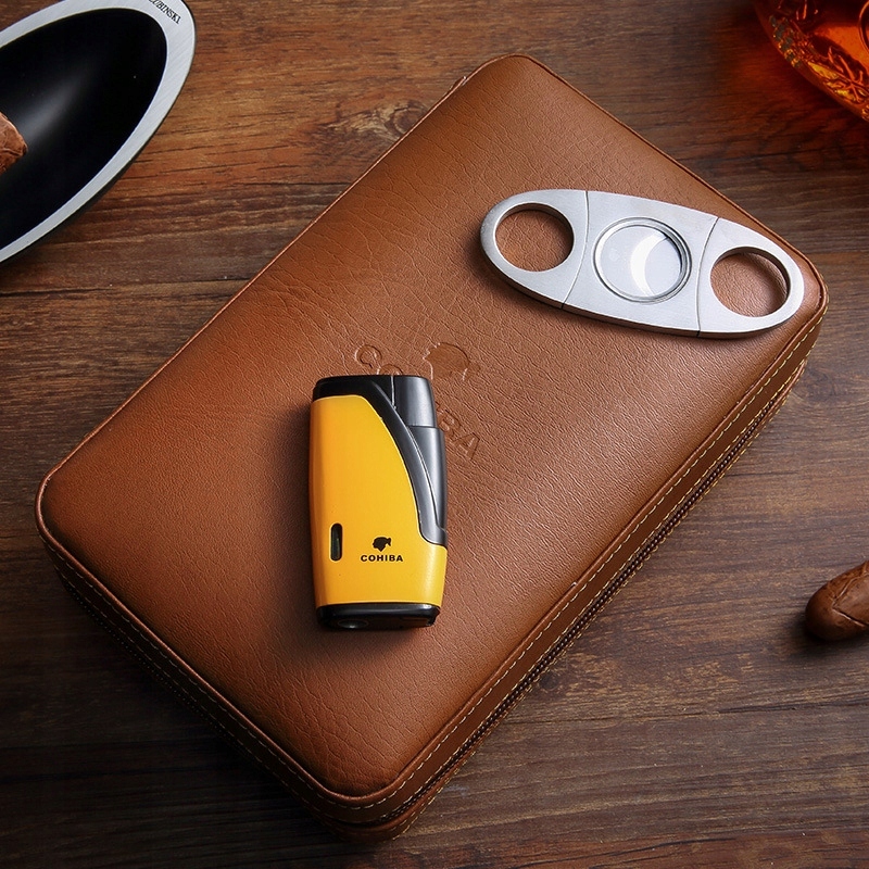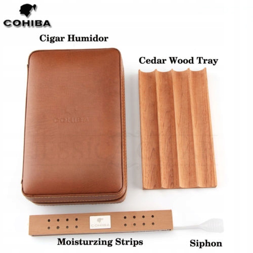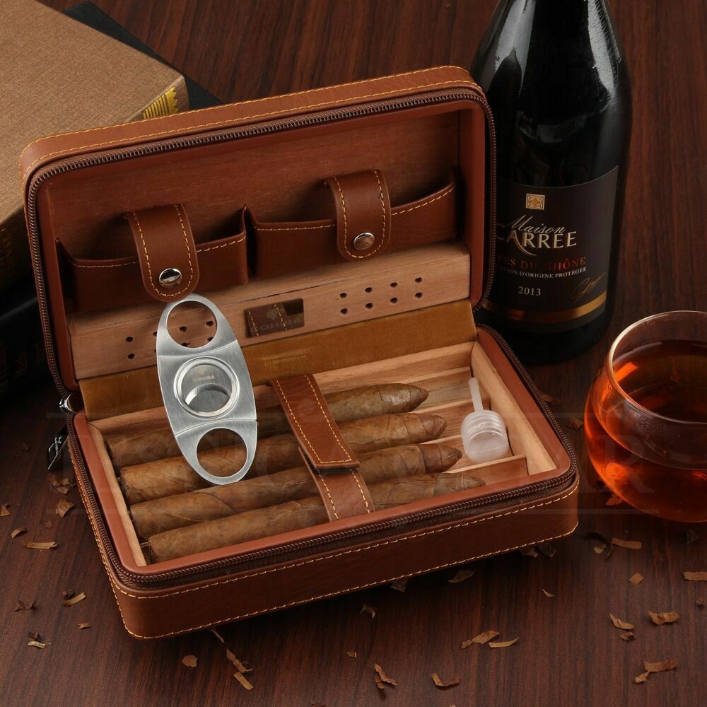 p >По-перше, ВЕЛИКА ЄМНІСТЬ ТА КОМПАКТНІСТЬ: х’юмідор оснащено зволожувачем повітря та крапельницею, що робить контроль вологості ваших сигар більш зручним і точним. Портсигар постачається з 2 знімними лотками з кедрового дерева різних розмірів для 4 сигар