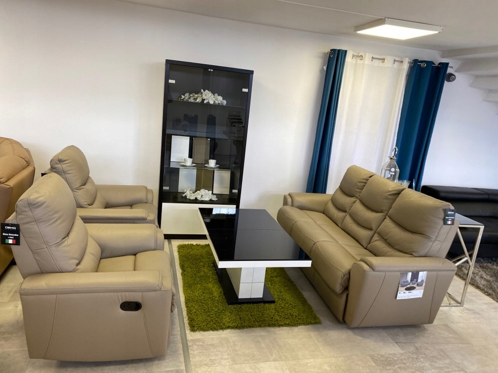 Пропонований комплект 3+2+1 без будь-яких функцій натуральна шкіра + екологічна шкіра (боки та спинка).