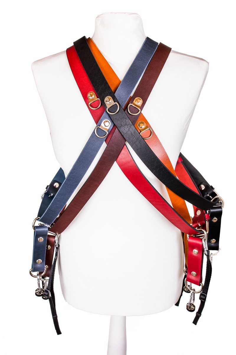 Плічові ремені призначені для одного тіла. Шкіра кольору коньячний, коричневий, чорний, темно-синій або червоний має польське походження, має красиву структуру натуральної зернистої шкіри та закріплена лакованим краєм ременя, захищаючи його від потертості.
