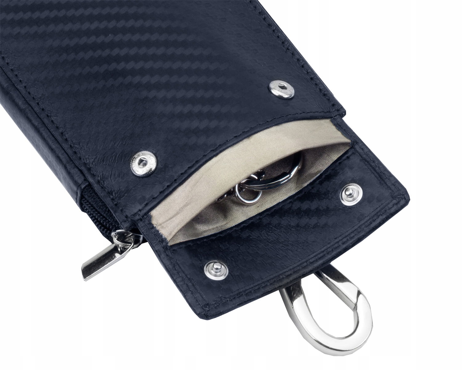 Ця модель, крім кишені з захистом KEYLESS, також має зовнішню кишеню на блискавці. Всередині кишені 6 карабінів для класичних плоских ключів.