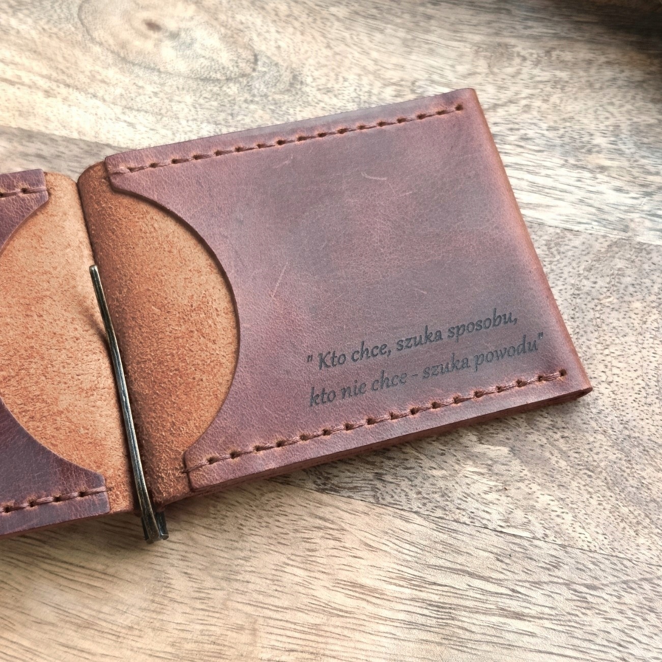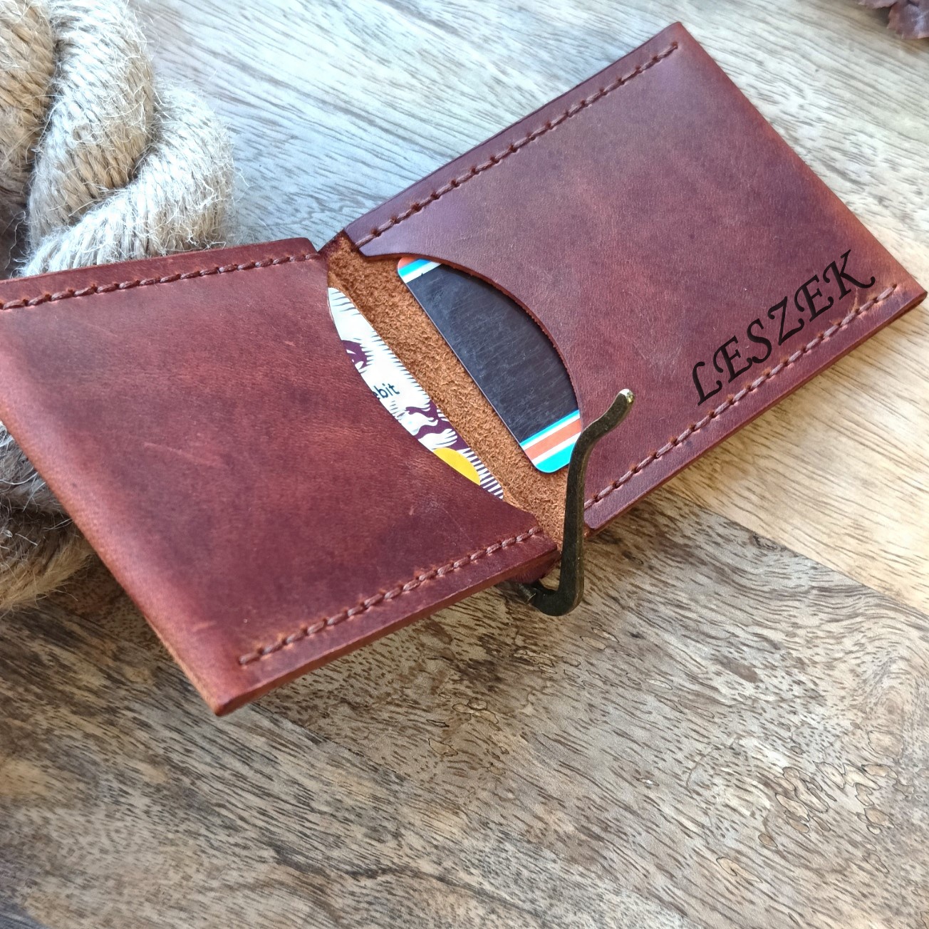 Шкіряний гаманець з кліпом з гравіруванням 4 -х картками ручної роботи