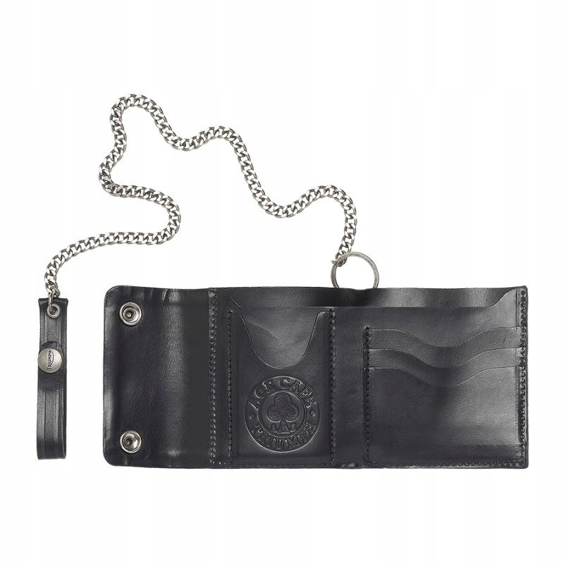 Шкіряний гаманець Triumph Ace на ланцюжку MPN MACS23810 — це чорний гаманець із 100% шкіри із застібкою від Triumph. Має тиснений логотип Triumph X Ace Cafe всередині та зовні, а також металевий ланцюжок і шкіряну петлю для кріплення до ременя.