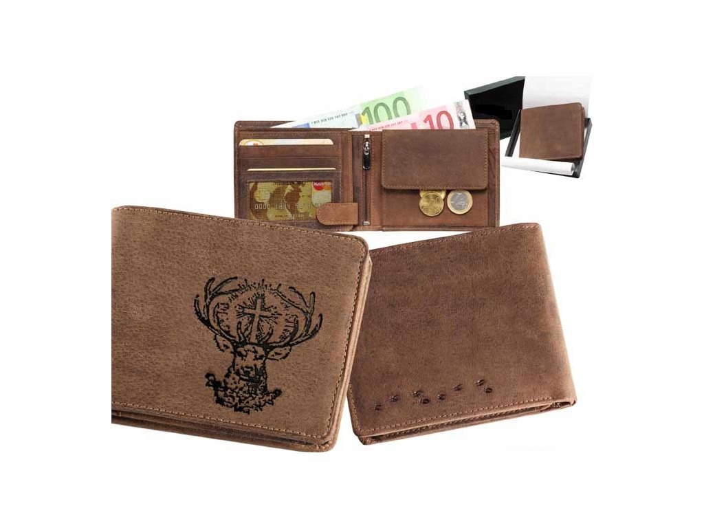 Цей гаманець, прикрашений гравіюванням із зображенням мисливського мотиву оленя Святого Губерта та його слідів, вражає не лише своїм зовнішнім виглядом, але й компактним розміром, який ідеально поміщається в кишеню штанів. Він пропонує достатню місткість і численні кишені для банкнот, монет, карток і документів, що забезпечує комфорт і безпеку використання в будь-якій ситуації.