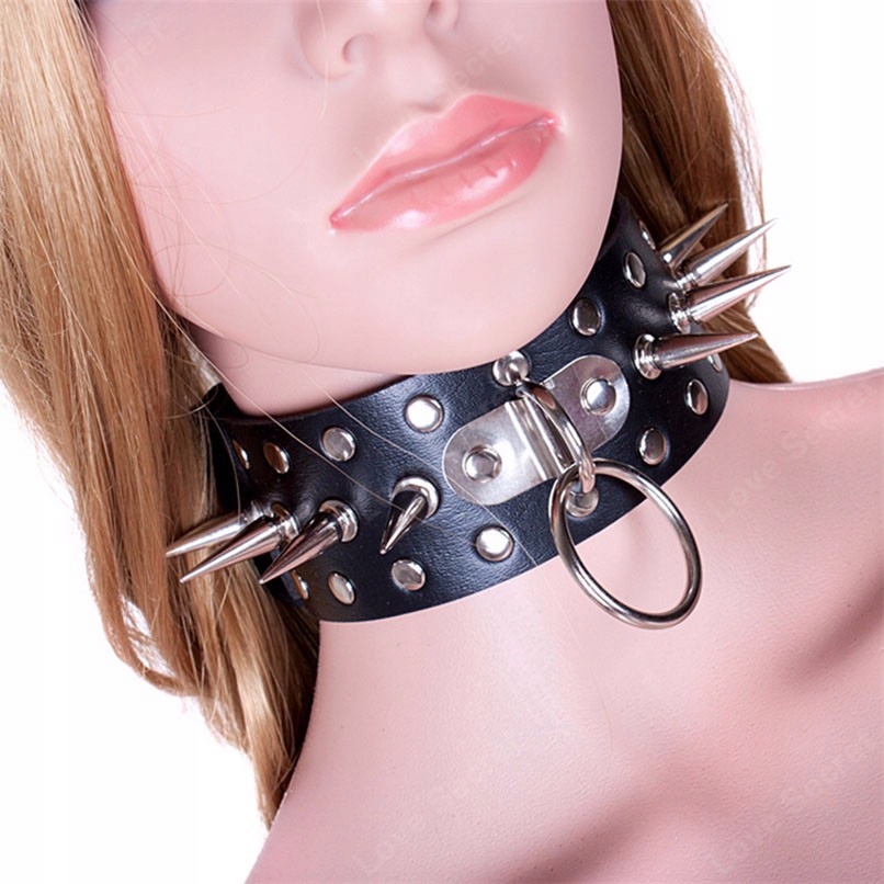 шкіряний комір-чокер довгий тримач повідця з шипами