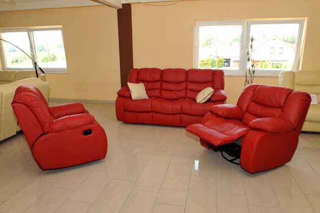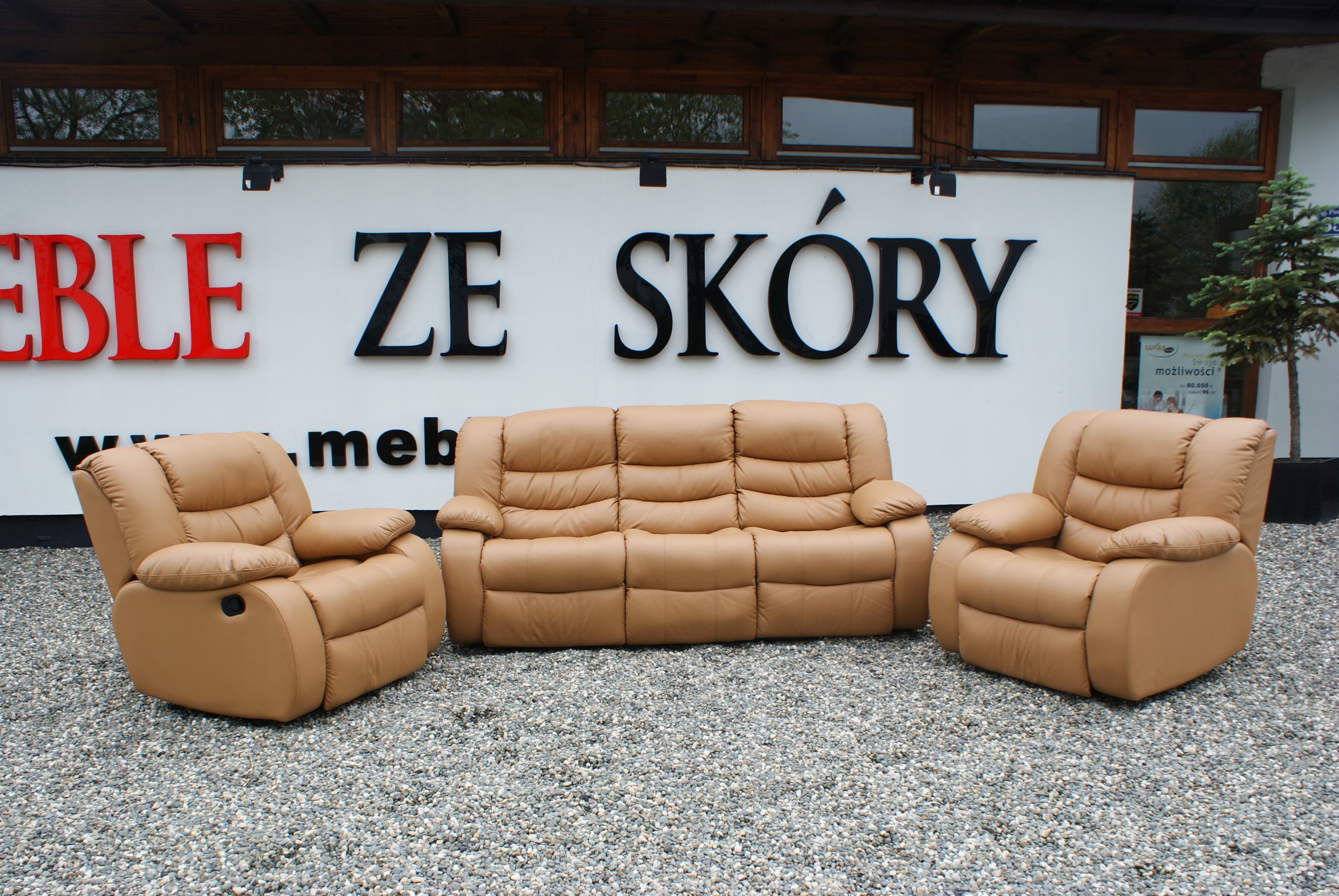 Пропонований комплект 3+1+1 натуральна шкіра + екологічна шкіра (боковини, спинка, низ меблів) без будь-яких функцій.