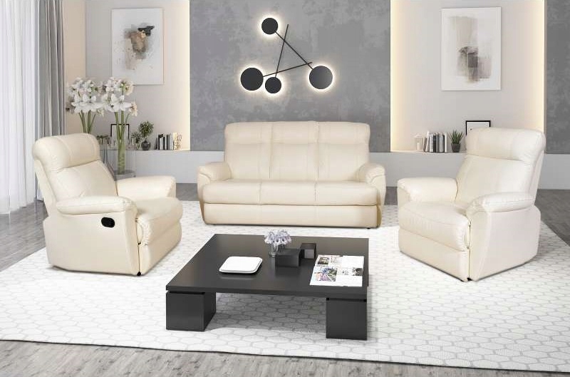 Пропонований комплект 3+1+1 без функцій - натуральна шкіра + бортики, спинка і низ меблів екологічна шкіра.