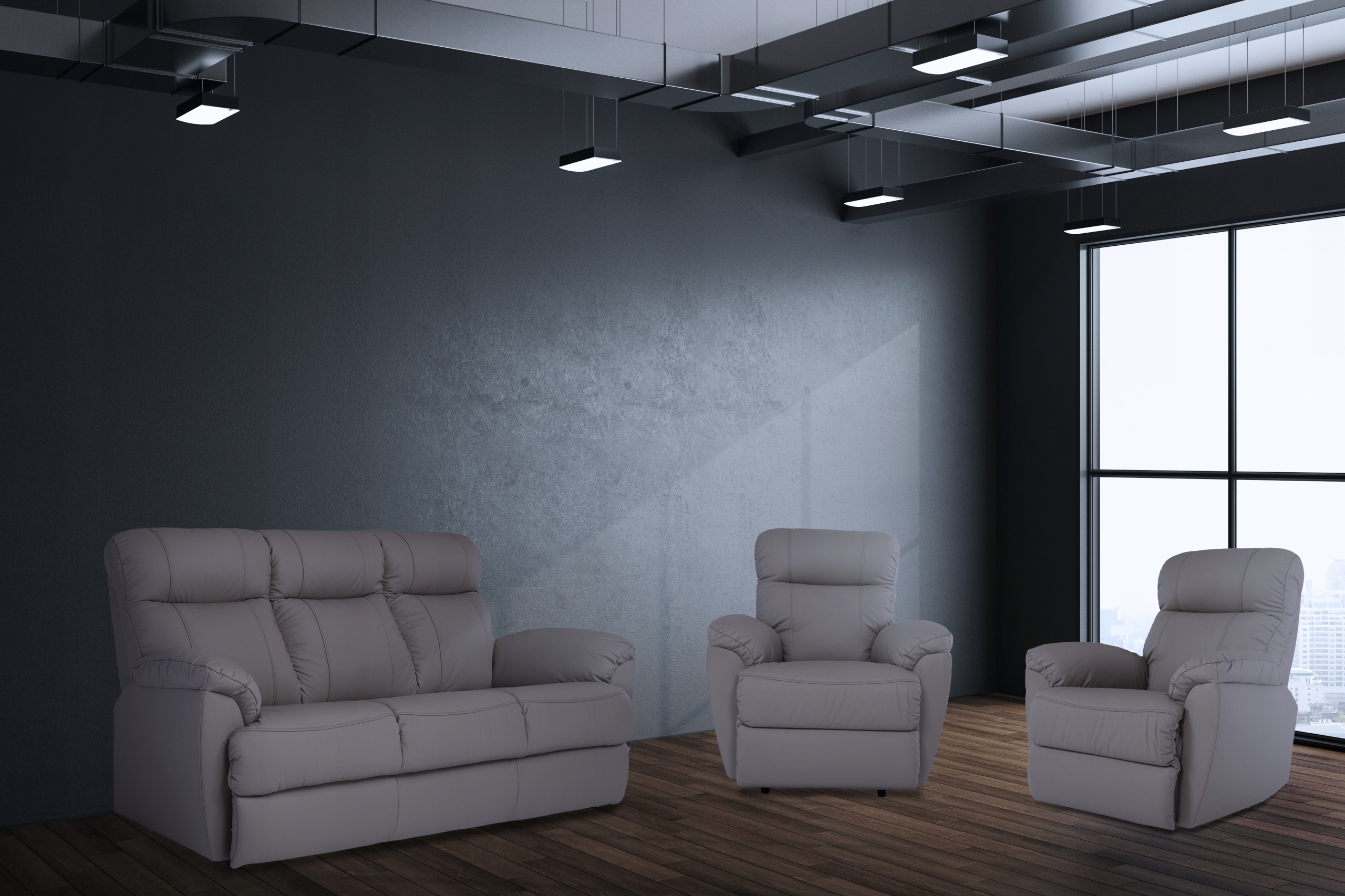 Меблі оббиті (екологічною) шкірою, також із зворотного боку, тому їх можна розмістити в будь-якому місці кімнати.