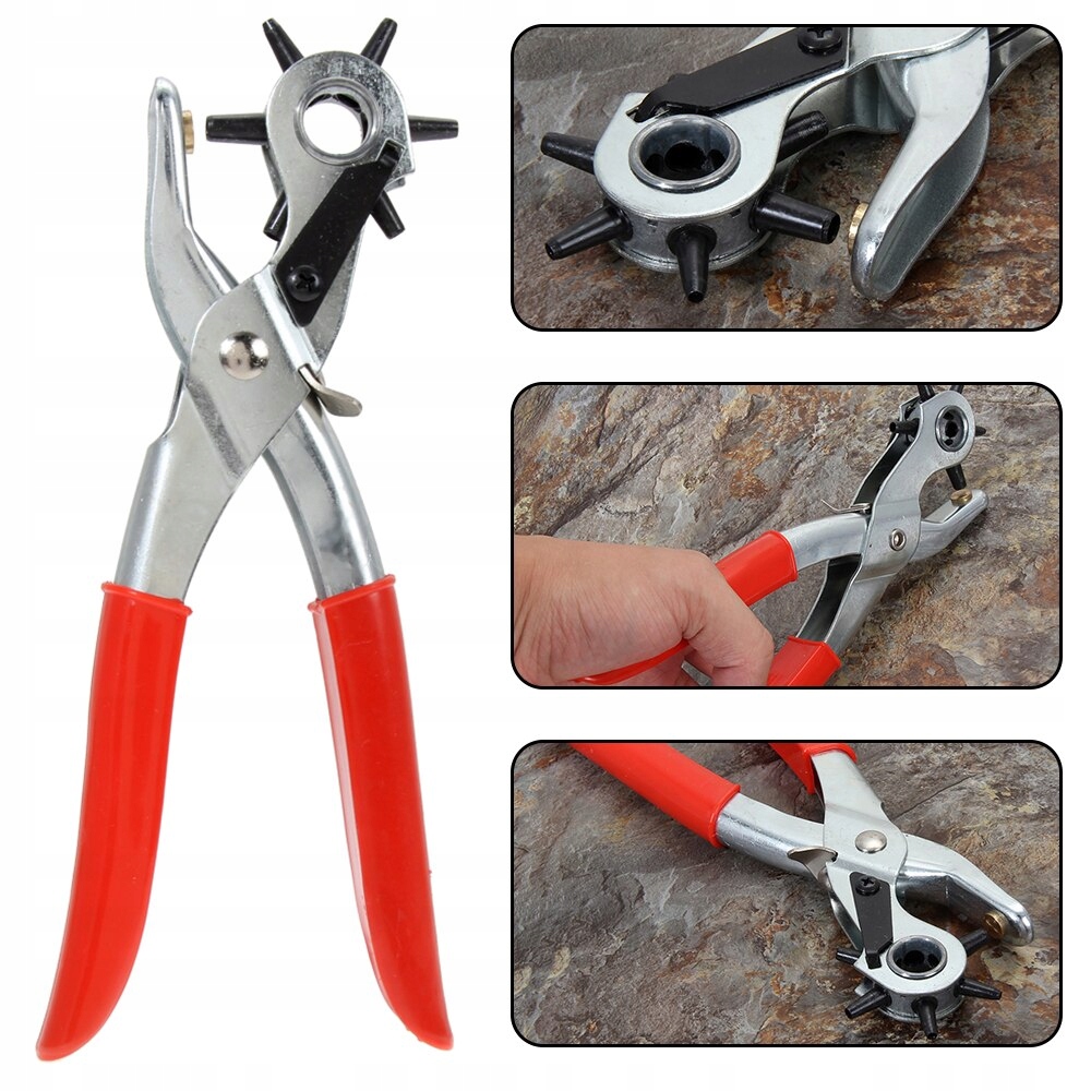 The pliers are designed for making holes in felt, leather, textiles, plastic foils, cardboard and others.
