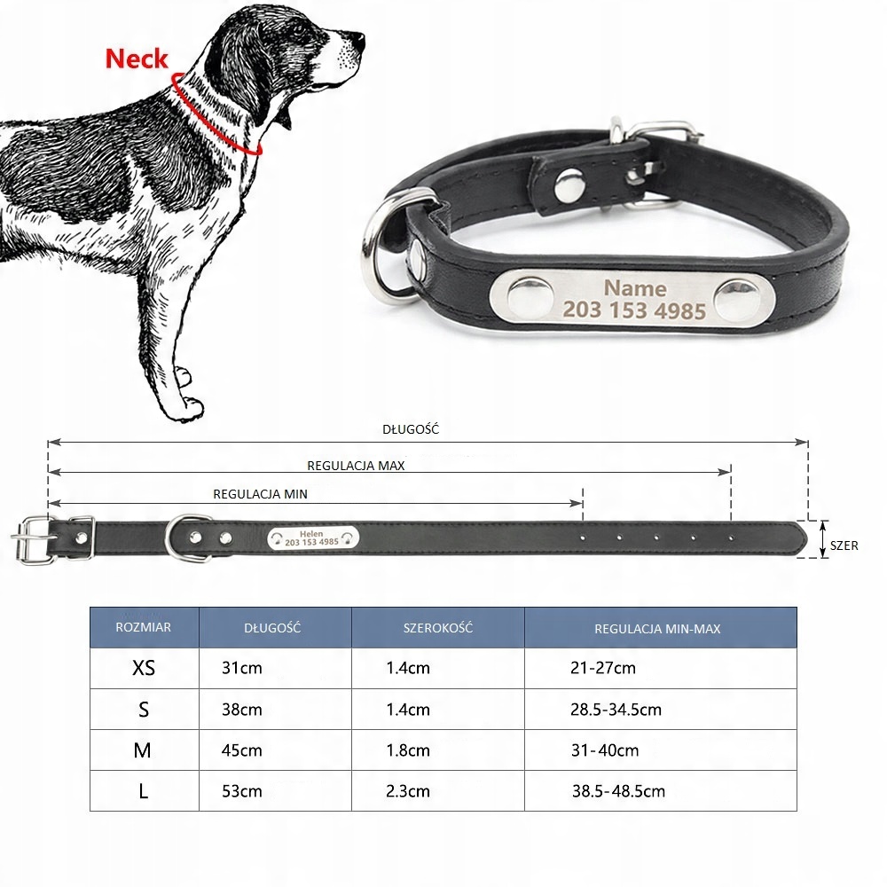 ШКІРЯНИЙ НАШИЙНИК ДЛЯ СОБАКИ/КОТА + ВАША ГРАВІЮВАННЯ/ТЕКСТ.