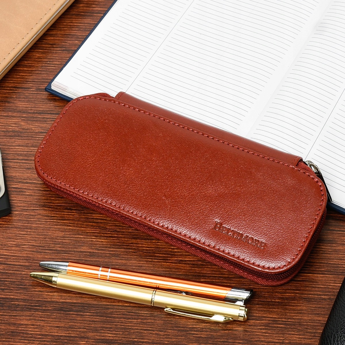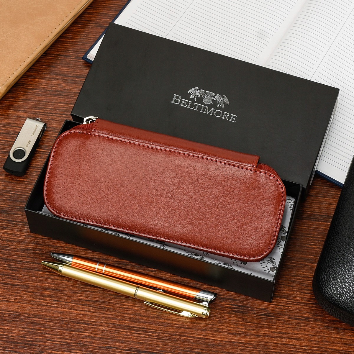 Коричневий пенал Leather, великий футляр для ручок Beltimore® - модель J05