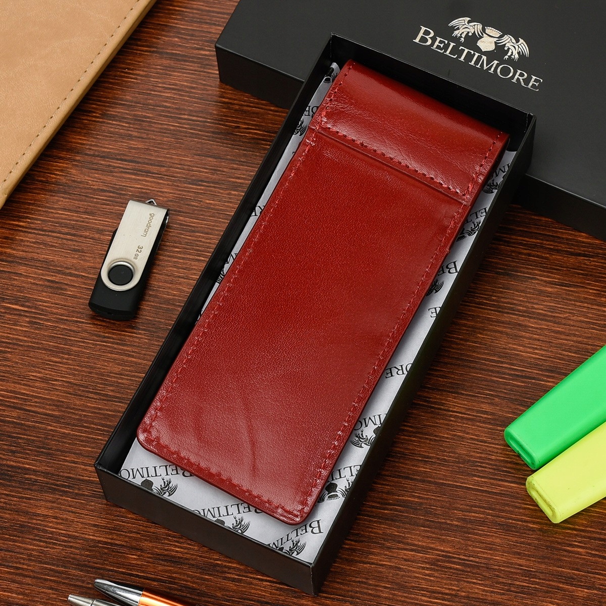 Шкіряний пенал Red Beltimore J03 Пенал ДЛЯ ЗАВДАНЬ ДО УНІВЕРСИТЕТУ