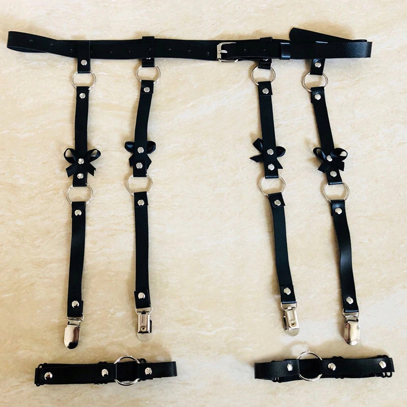 Унизу ремня є затискачі, за допомогою яких ремінь можна прикріпити як до панчох, так і до чорних стегнових лямок, що входять до комплекту.