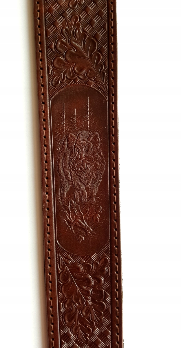 Високоякісний ремінь для зброї з тисненим орнаментом кабана, виготовлений із волової шкіри з неслизьким неопреновим дном. p>