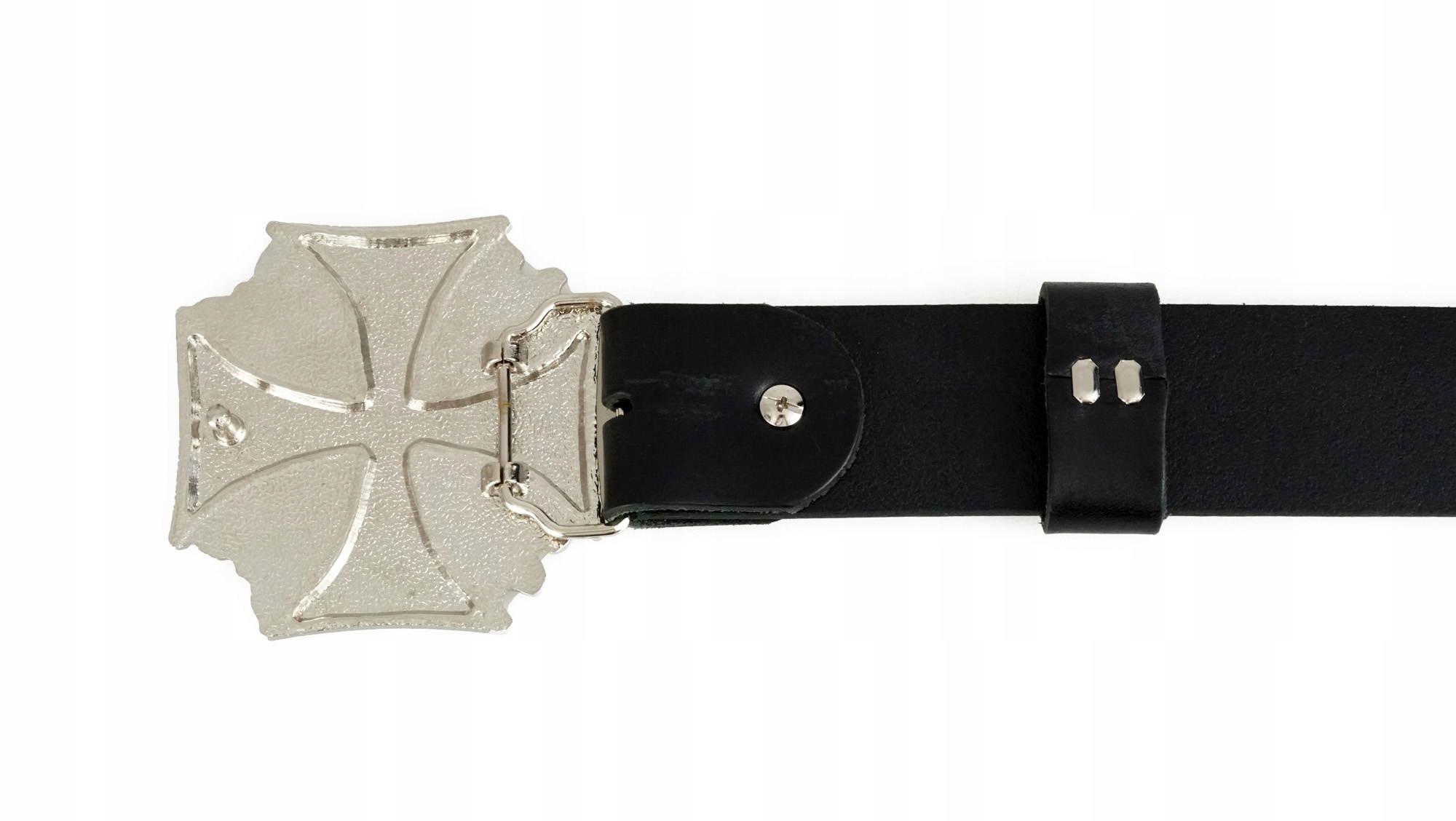 Чорний пояс — це поєднання елегантності та свободи, яке підходить як чоловікам, так і жінкам. Ремінь має красиву металеву пряжку з мотивом мальтійського хреста в оточенні черепів, що додає дизайну оригінальності та неповторності. Ідеально підходить для любителів двох коліс.
