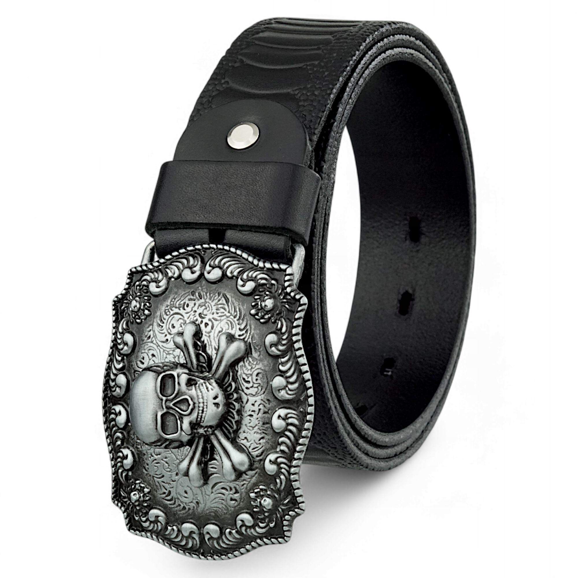 ШКІРЯНИЙ РЕМІНЕЦЬ МОТОЦИКЛІСТА BLAKARDO 4 СМ ЧОРНИЙ ЧЕРЕП СТАРЕ СРІБЛО