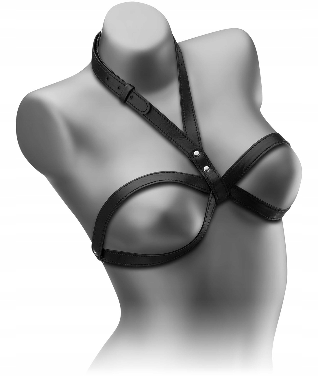 Надзвичайно оригінальний бюстгальтер, який одягається на шию, відкриваючи груди. Шкіряні ремінці підтримують груди знизу і охоплюють їх по всій ширині, надаючи їм пустотливий і провокаційний вигляд. Така унікальна нижня білизна чудово доповнить образ сміливої та сексуальної панночки. Він вражає чоловічу уяву та балує почуття, привертаючи погляди кокетливо спокусливими сосками та оголеними вигинами.