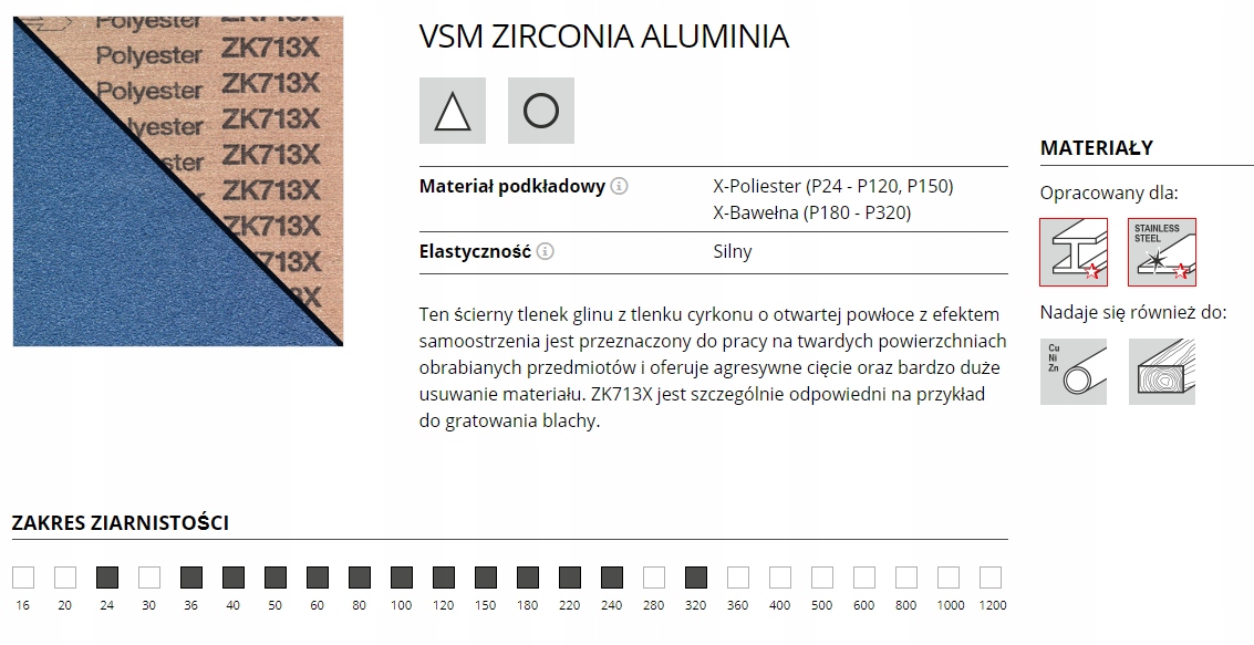 Матеріал VSM ZK713X має властивості самозаточування. Через опір, що виникає під час шліфування, абразивні кристали кришаться, створюючи нові, постійно гострі краї.