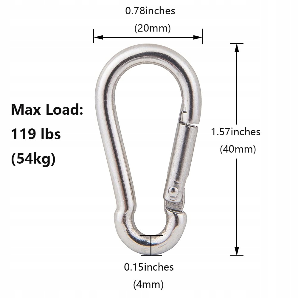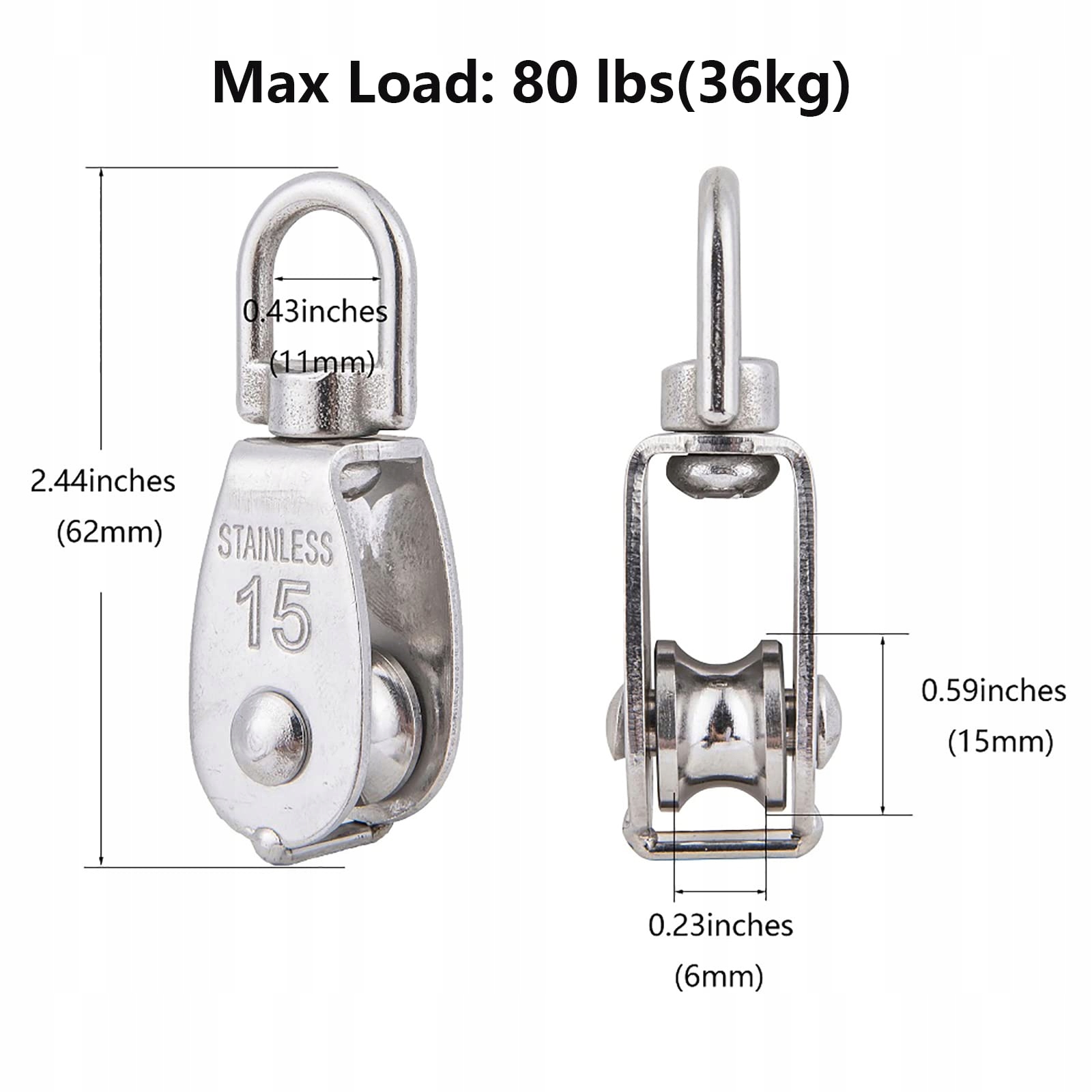 【Розмір】 Один комплект шківів M15 Розмір: довжина: 62 мм (2. 44 дюйма), ширина: 21 мм (0,83 дюйма), максимальне навантаження: 36 кг (80 фунтів). Карабін: Максимальне навантаження: 54 кг