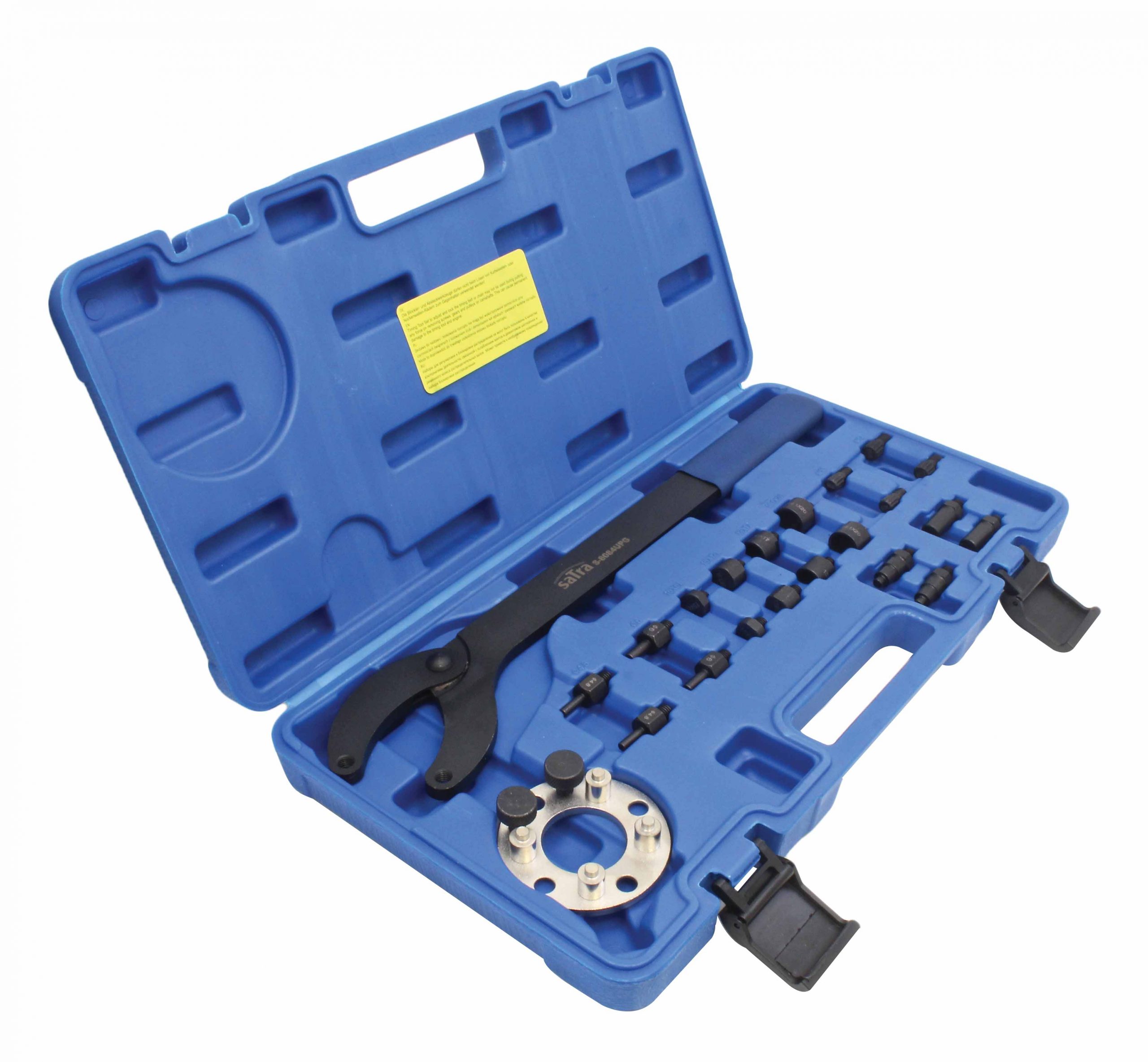 - Спеціалізовані інструменти дозволяють установити фазу газорозподілу до верхньої мертвої точки, зняти/встановити розподільний вал, замінити зубчастий ремінь, масляний насос, гаситель коливань, перевірити регулювання розподільного вала та зафіксувати колінчастий вал.