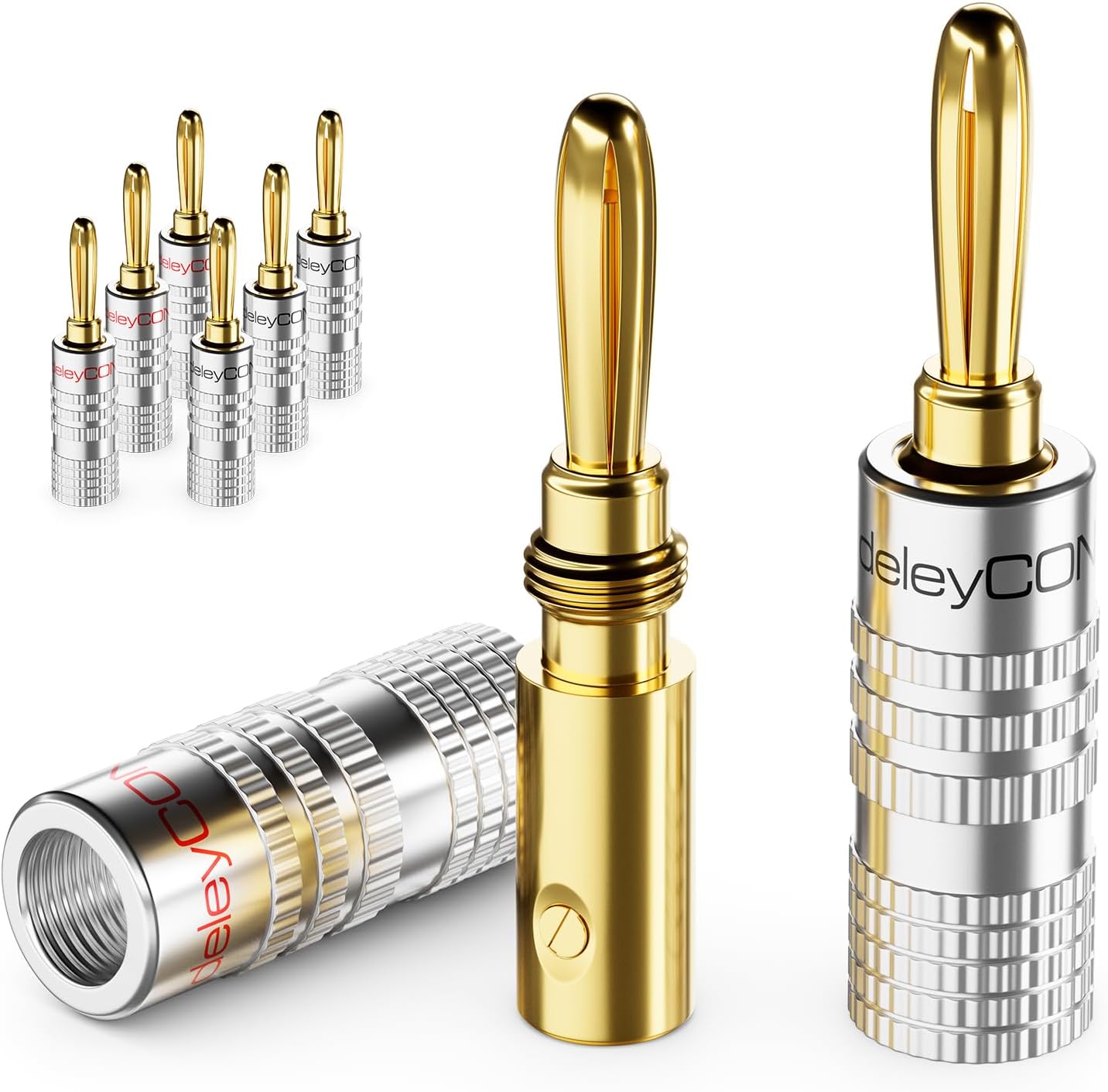 - DELEYCON HIFI Set of banana plugs consisting of 6 gold -plated, screwed aluminum housings